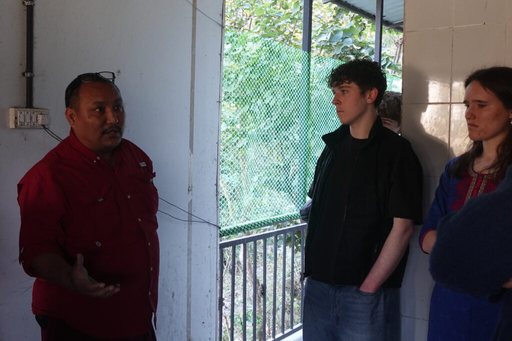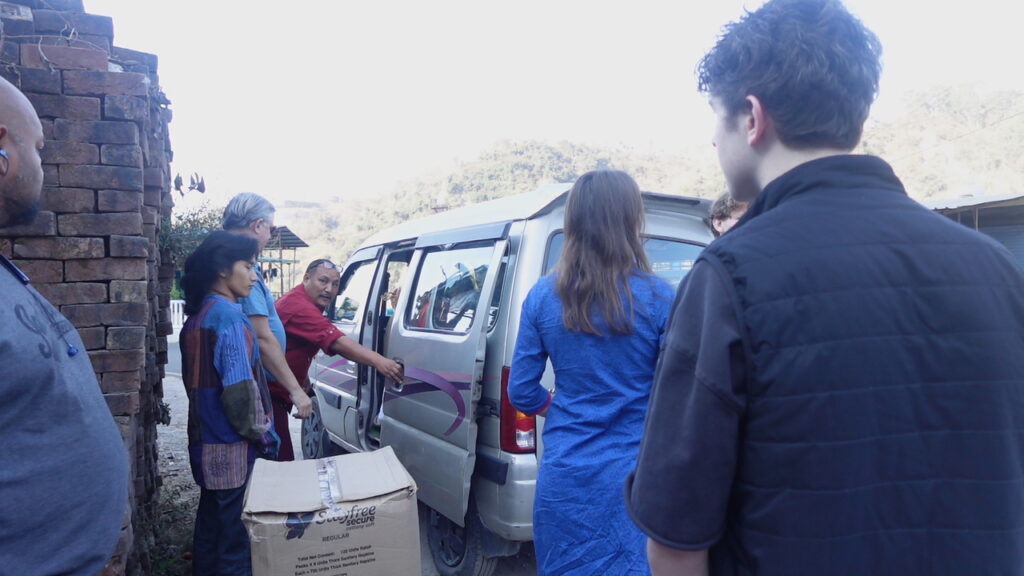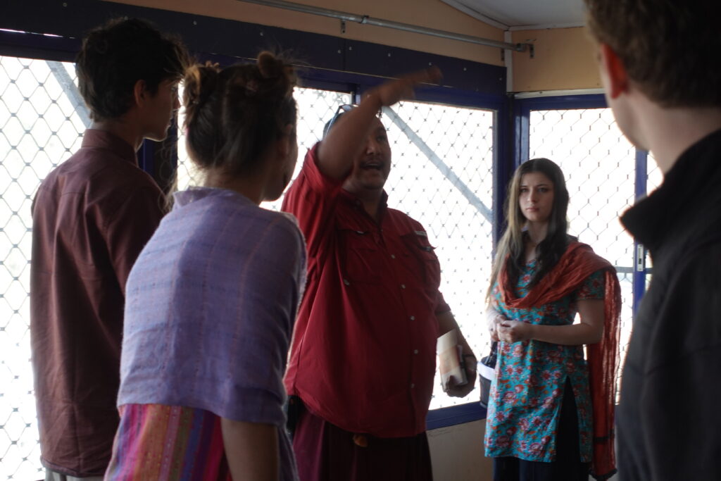Today we went with Lama Tenzin to his Pink Pads facility. On the way, we had to get out of the bus and transfer to Lama Tenzin’s car because the bus is too big to climb the steep hill and manage the narrow curves up to the building. I thought it was very interesting how fast the lama would go through these winding roads, narrowly avoiding people, animals, and other objects. He was completely unbothered and remained so calm throughout his driving. It made a big impression on me.